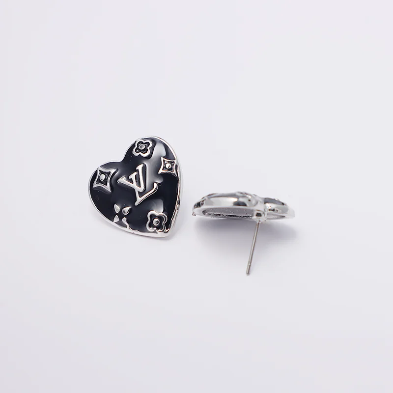 Aretes De Corazón Con Logo De Marca Para Mujer, Negro