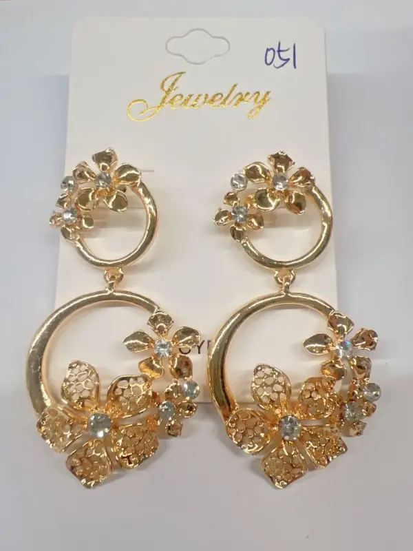 / Flower cluster gemstone earrings lively atmospheric – diseño de racimo de flores de gema animado y atmosférico aretes